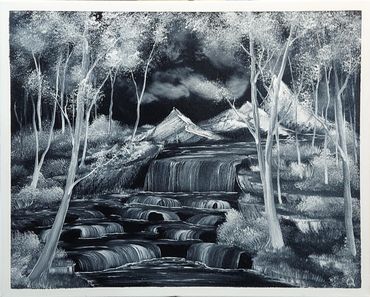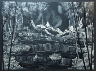 Suzanne did not grow up being an artist, in fact she was told by those close to her that she was a terrible artist. That she couldn't draw, and maybe if she took some classes she might be able to some day. At the age of 30, Suzanne had a massive life saving surgery that required her to be on bed rest for 3 weeks, and during this time, she watched every episode of Bob Ross's Joy of Painting that was available. She had always wanted to paint, but let those negative voices from her childhood stop her, until then. After she was healed she started to paint as often as she could, using cheap paints and canvases until she could hone her techniques. Its been 8 years, and she hasn't put down the brush, and tells everyone she meets that art isn't for anyone else, its for you. Don't let their voices stifle your art.